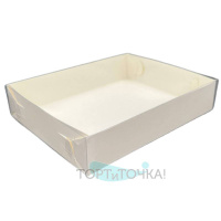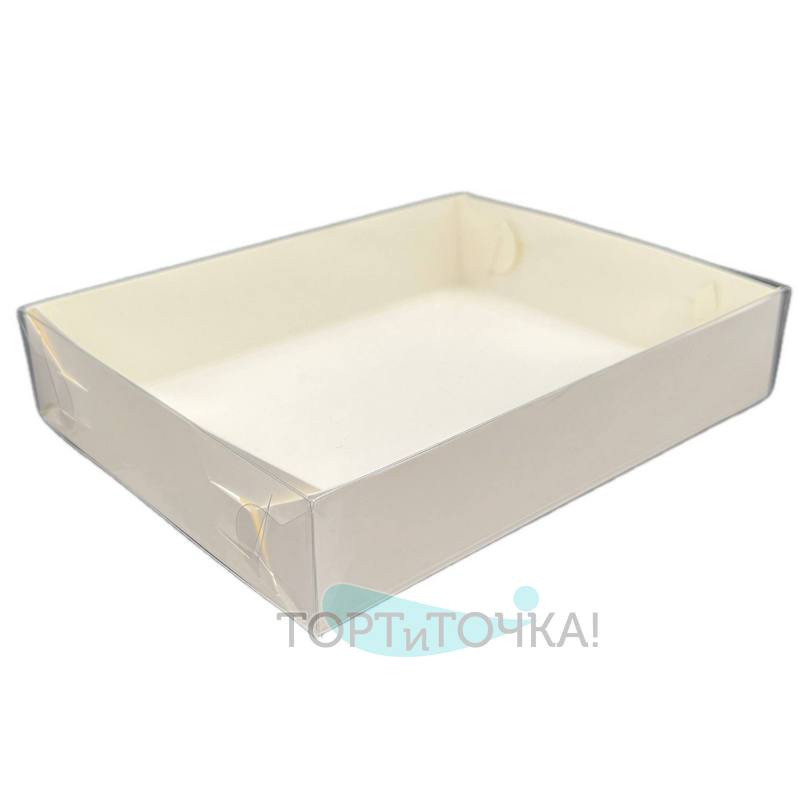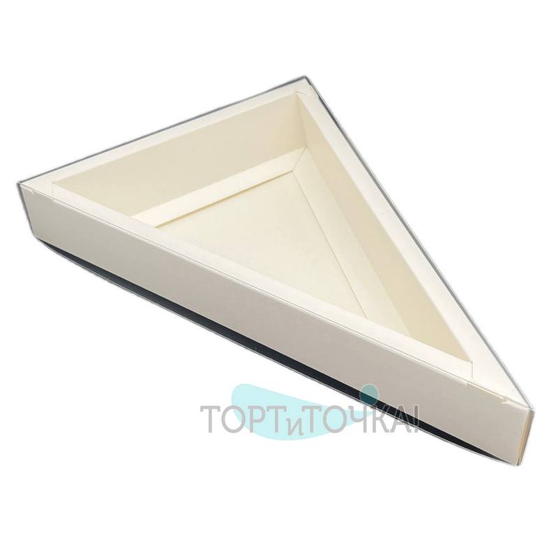 Коробка для кондитерских изделий треугольная с пластиковой крышкой 240х160х35 Белая