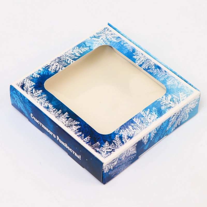 Коробка сборная с окном "Зимушка", 13 х 13 х 3 см