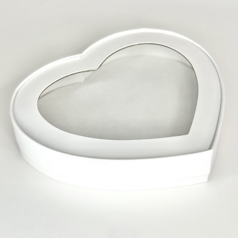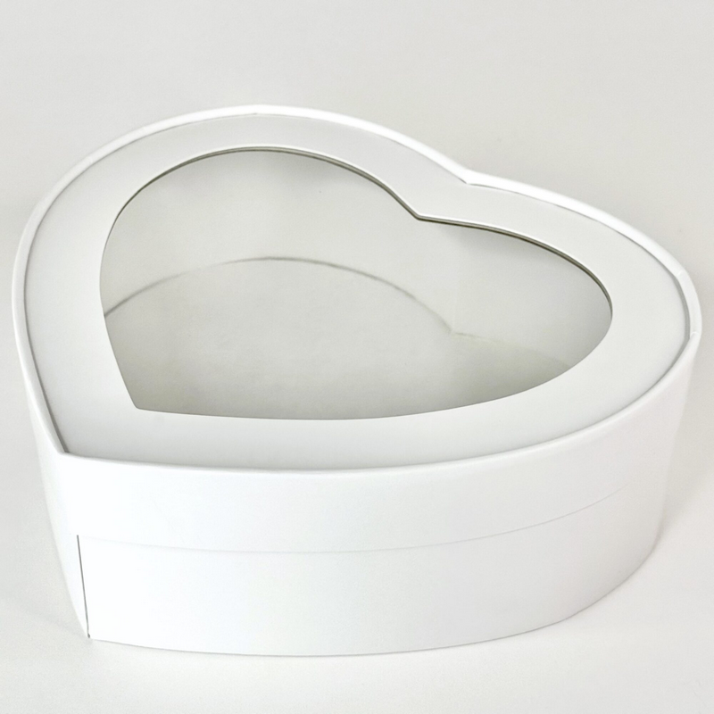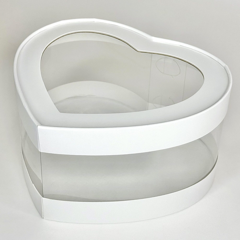 Коробка под зефир, печенье и макароны ТУБУС СЕРДЦЕ с прозрачными стенками 215*180*100 мм (белая)