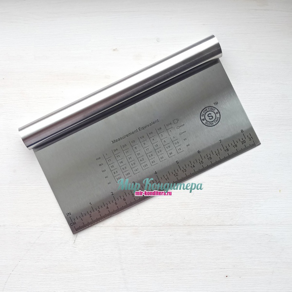 Скребок кондитерский прямоугольный с линейкой, с закрученной ручкой. Размер 125 х 220 мм. Материал: нержавеющая сталь.300 руб / шт -