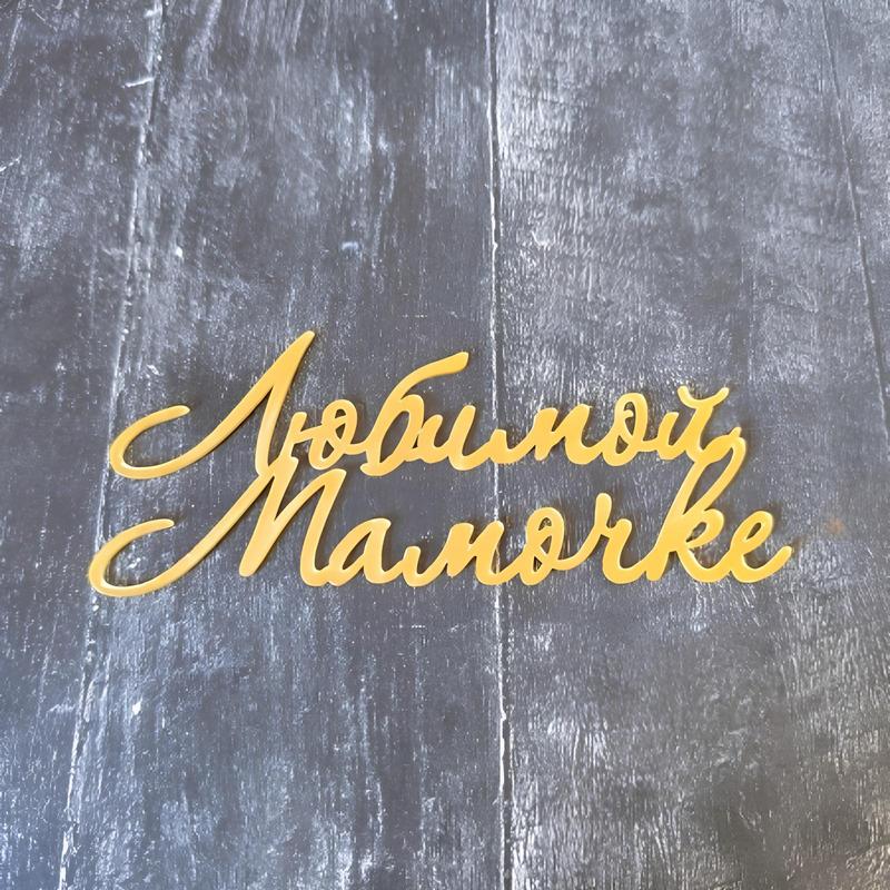 Топпер без шпажки "Любимой мамочке" золотой 14х6 см